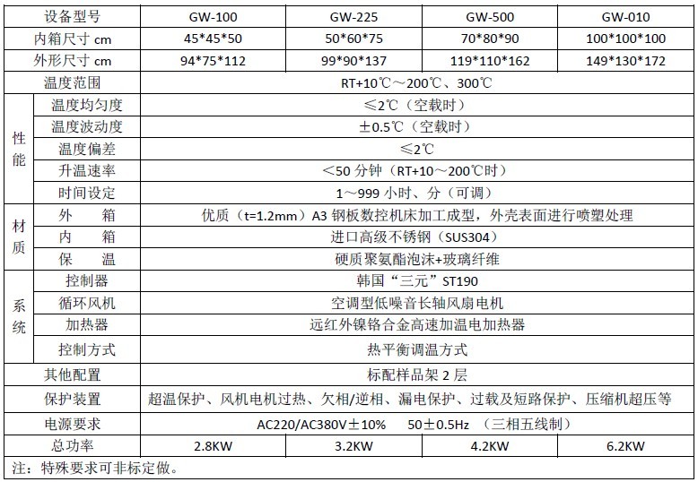 高溫試驗箱箱體內膽均采用不銹鋼鏡面板(或拉絲板)氬弧焊制作而成,箱體外膽采用優質鋼板噴塑處理,造型美觀新穎。熱風循環系統由能在高溫下連續運轉的風機和特殊風道組成,工作室內溫度均勻。獨立限溫報警系統,超過限制溫度即自動中斷,保證實驗安全運行不發生意外。設有大面積鋼化玻璃觀察窗,供觀察工作室狀況之用。