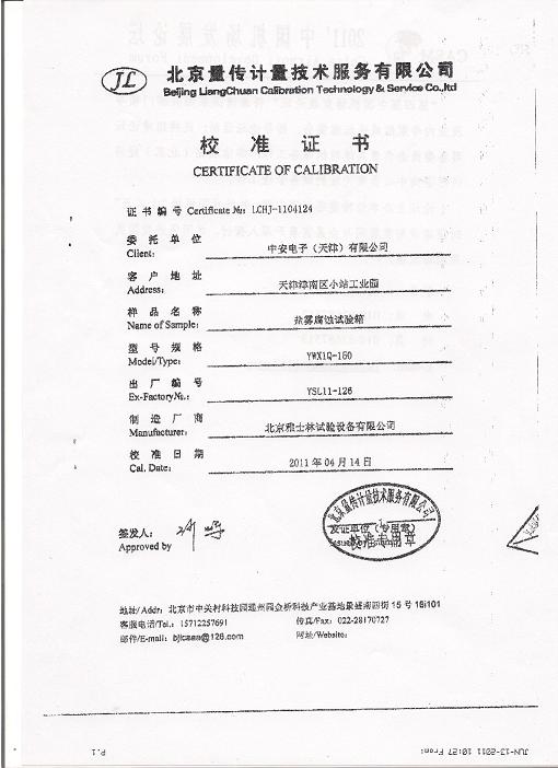 >>鹽霧腐蝕試驗箱校準證書-北京量傳計量-中安電子