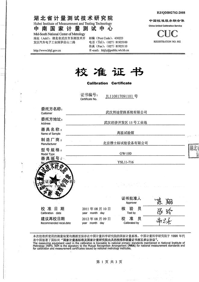 ·高溫試驗(yàn)箱校準(zhǔn)證書(shū)-湖北計(jì)量院-邦迪集團(tuán)