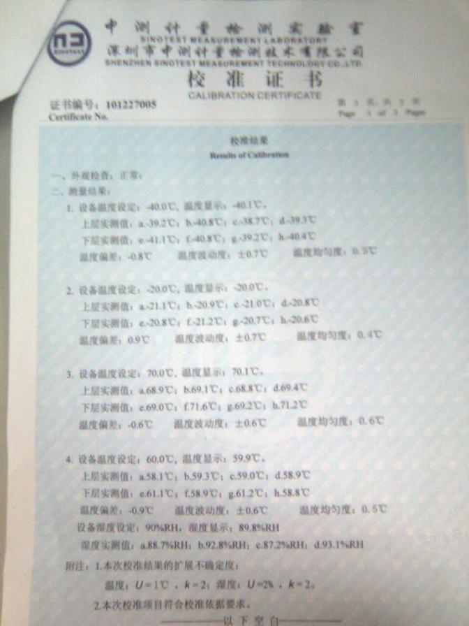 ·高低溫濕熱試驗箱校準證書-深圳中測計量-深圳精銳通