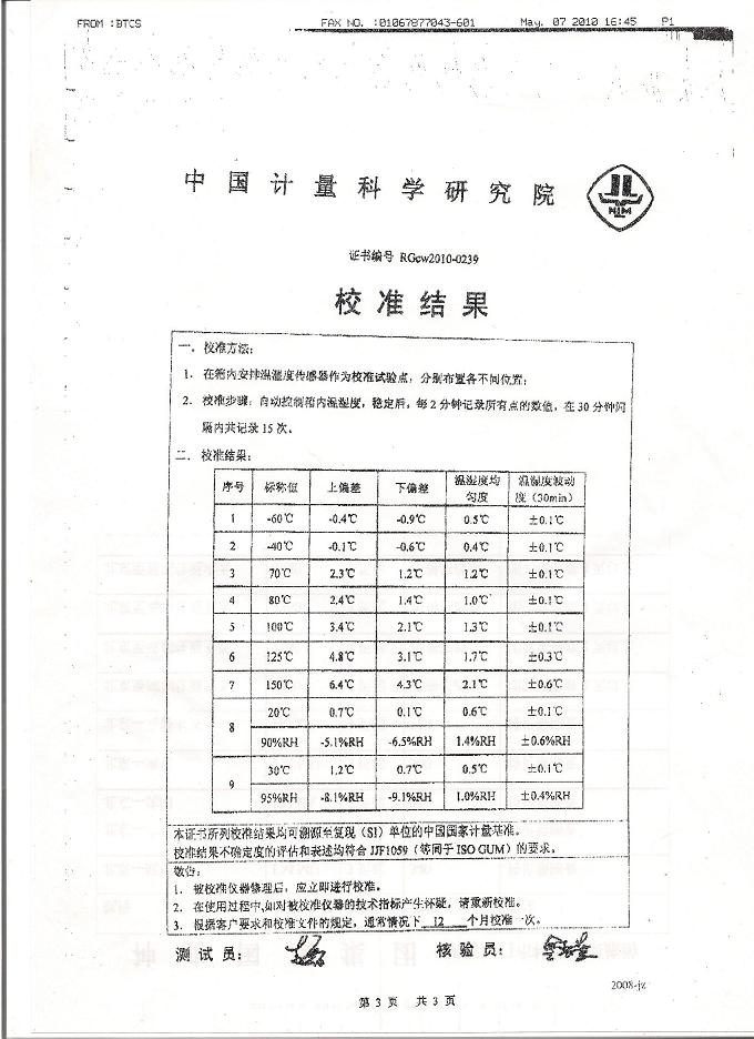 高低溫濕熱試驗箱校準證書-中國計量院-國家雷電測試