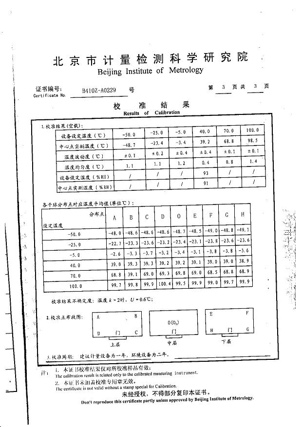 >>高低溫濕熱試驗箱校準證書-北京計量院-中國電科院1