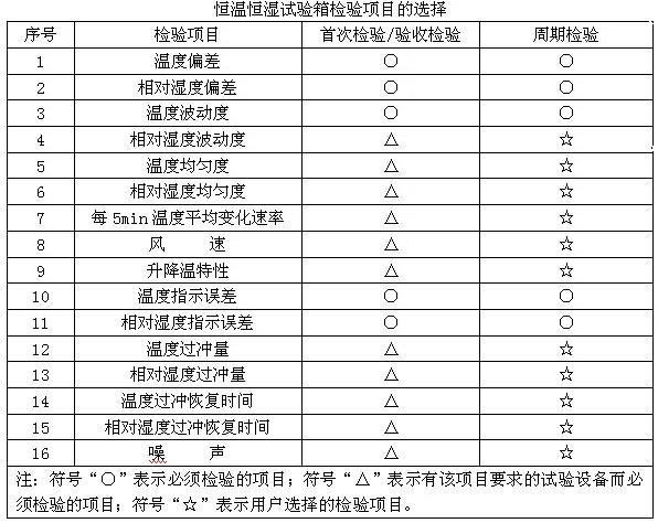 恒溫恒濕試驗箱首次檢驗/驗收檢驗和周期檢驗時,若無其他規定,按下表選擇檢驗項目。